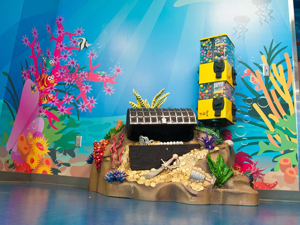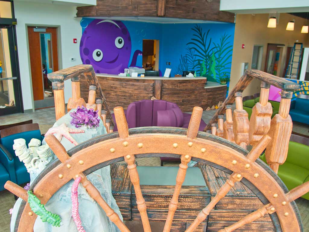 Dentistry For Children’s Gladstone Office keeps the pirate tradition going with our waiting area ship slide. Little privateers arriving or waiting at the Gladstone Dental Office can slide down our plank
